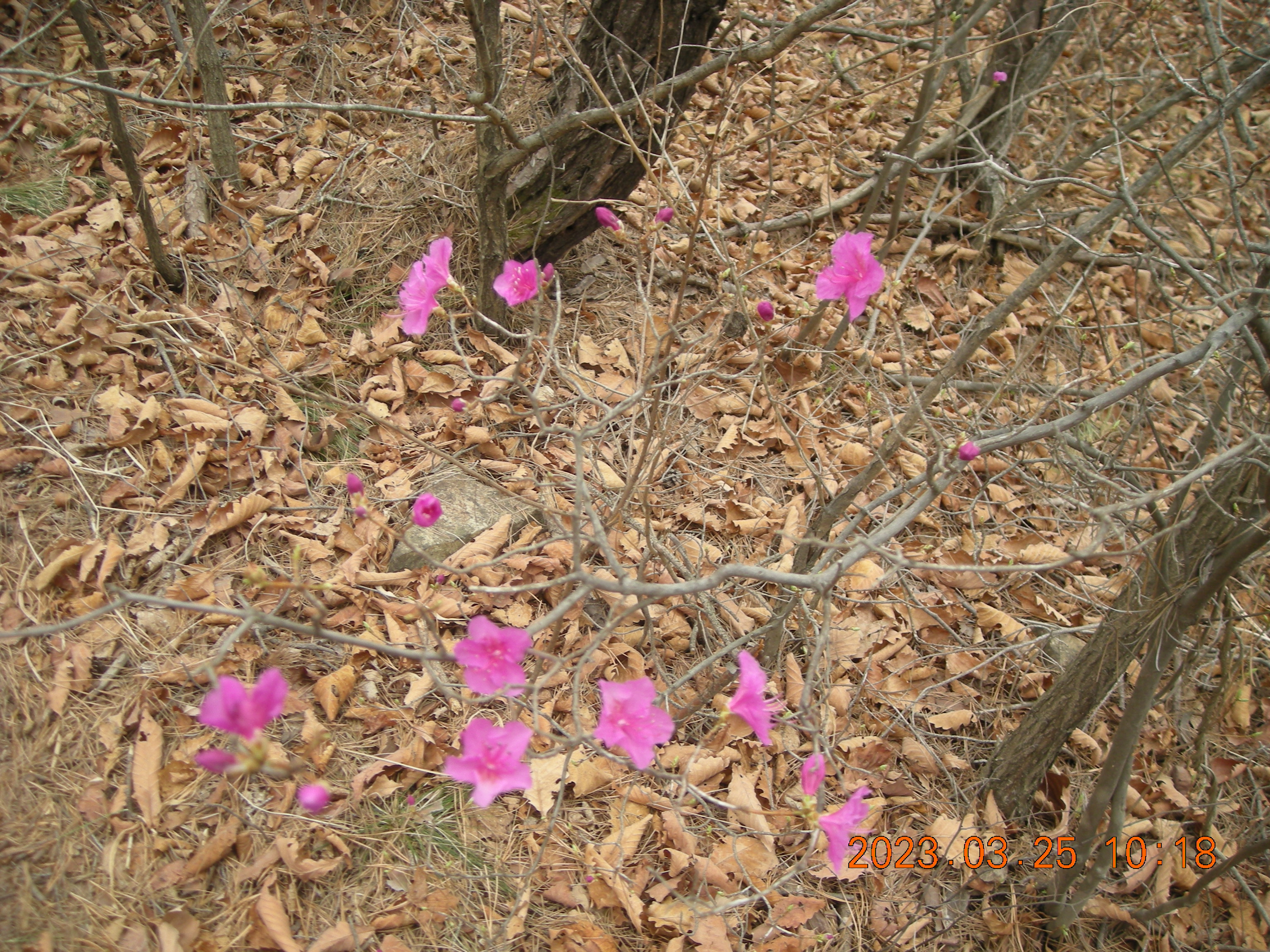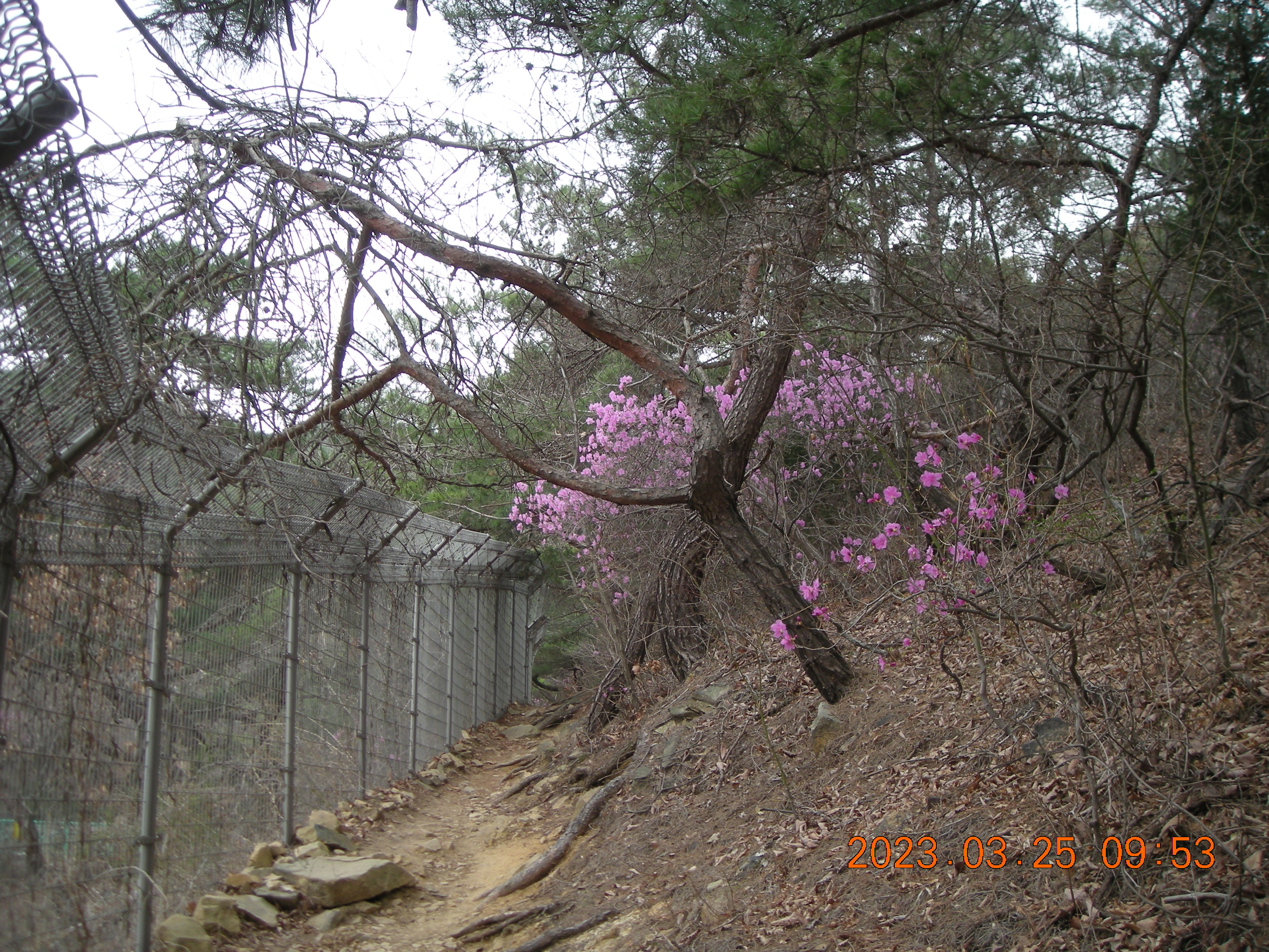 – 산 한가운데 산 아래에는 진달래가 활짝 피고… 산 위에는 반쯤 만개…