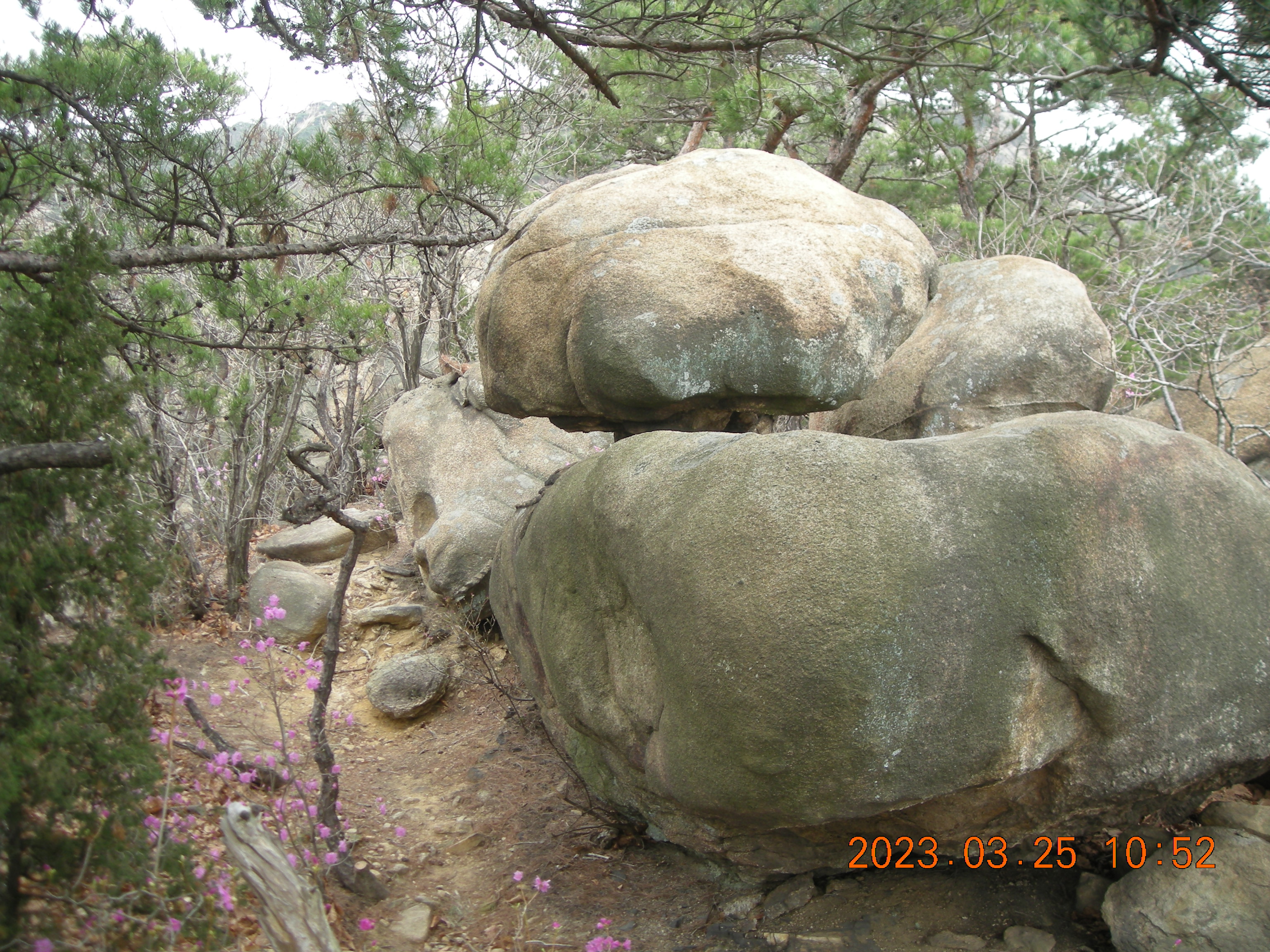 버섯 바위 (10:50) -> 3가방 입구 안내판 (11:25)..간식..좌회전 -> 안양능선 도착 (12:40)