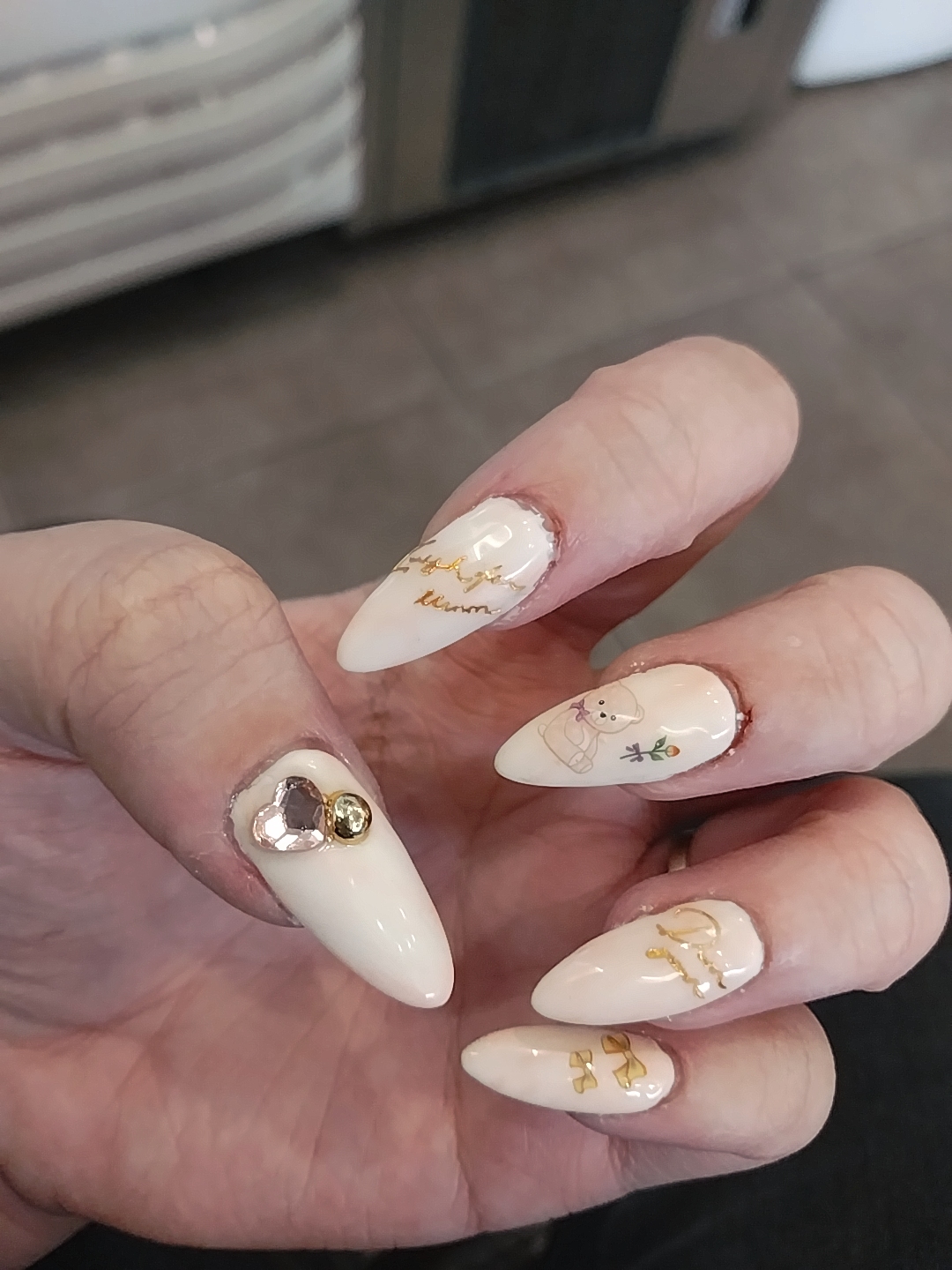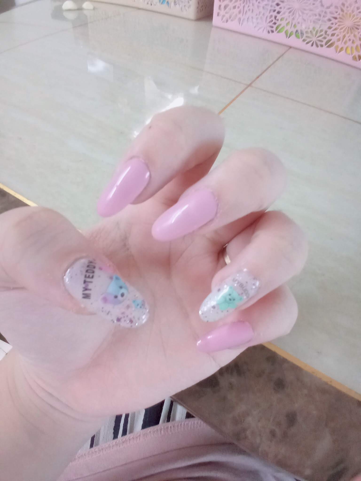 아래 사진의 테디베어와 같은 디자인으로 네일아트를 해서 네일팁은 넣지 않았습니다.
